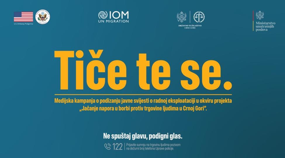 Državno tužilaštvo kroz učešće Operativnog tima za borbu trgovine ljudima, nedozvoljenog prelaska državne granice i krijumčarenja ljudi, u saradnji sa Međunarodnom organizacijom za migracije (IOM) iMinistarstvom unutrašnjih poslova/Odjeljenjem za borbu protiv trgovine ljudima dio je medijske kampanje “Tiče te se” , usmjerene na podizanje javne svijesti o problemu radne eksploatacije u Crnoj Gori.